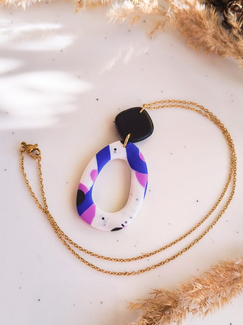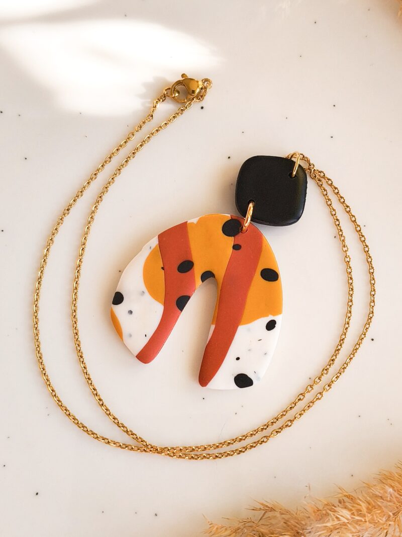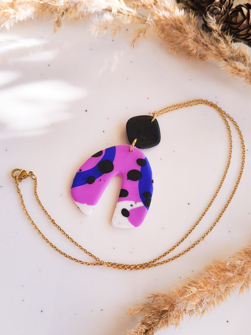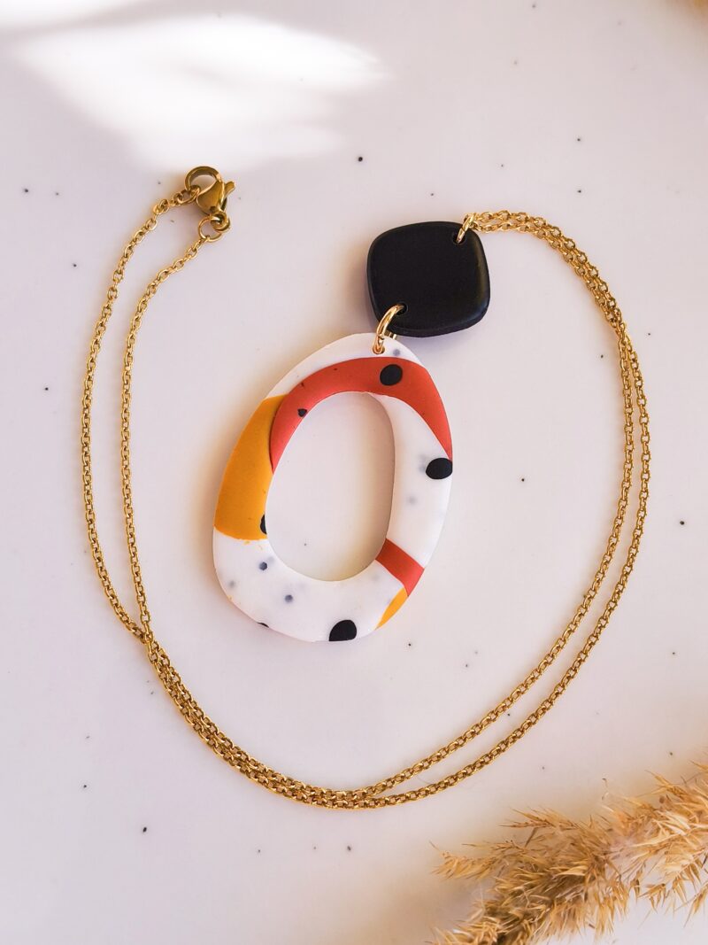 Naszyjnik stworzony z leciutkiej gliny polimerowej.