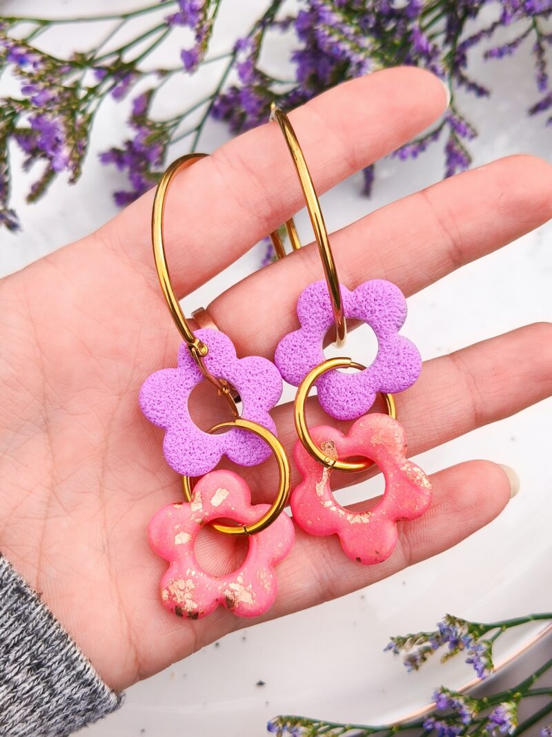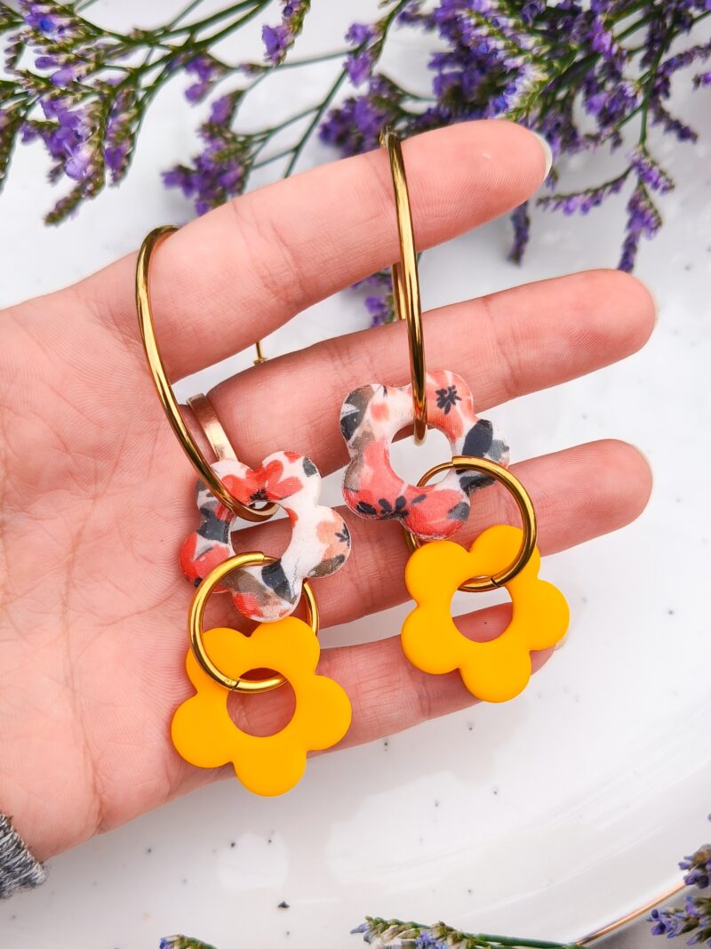 Kolczyki Kwiatuszki 8w1 – Żółto + Różowe
