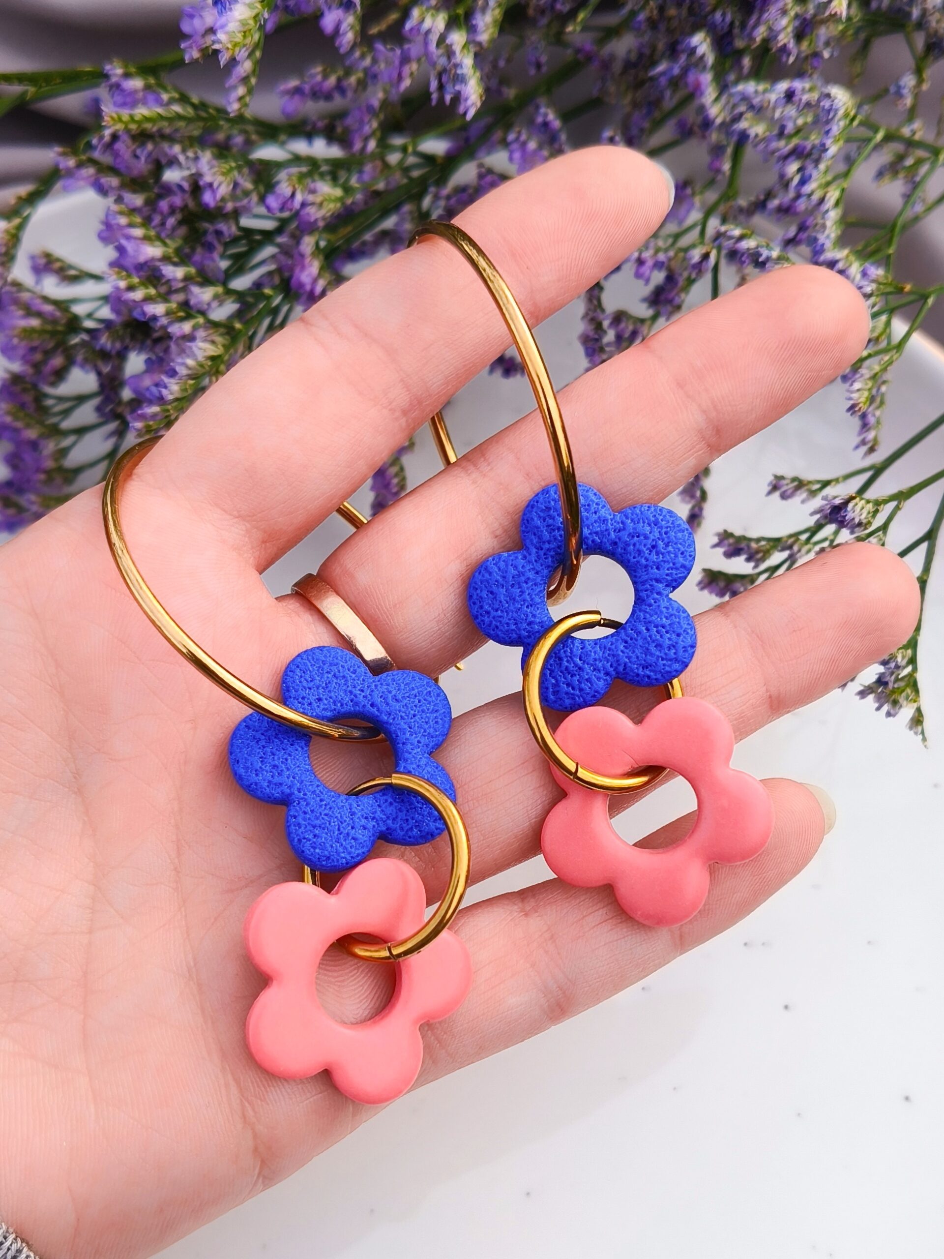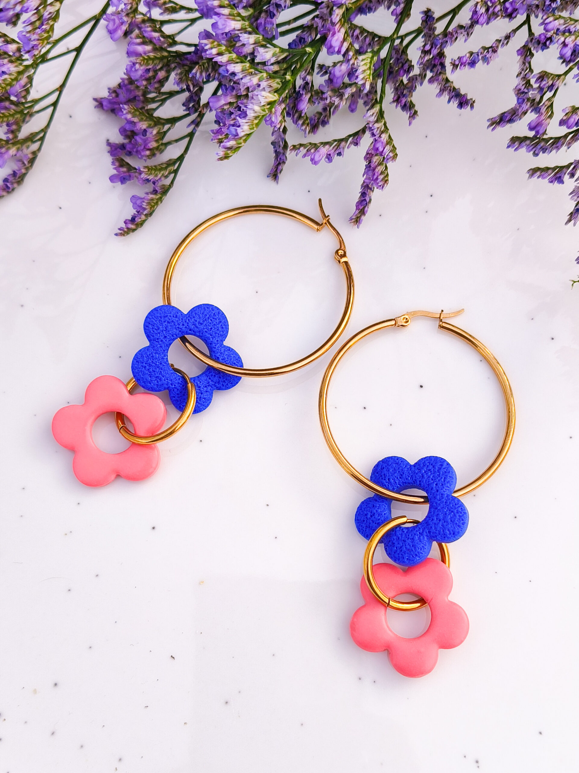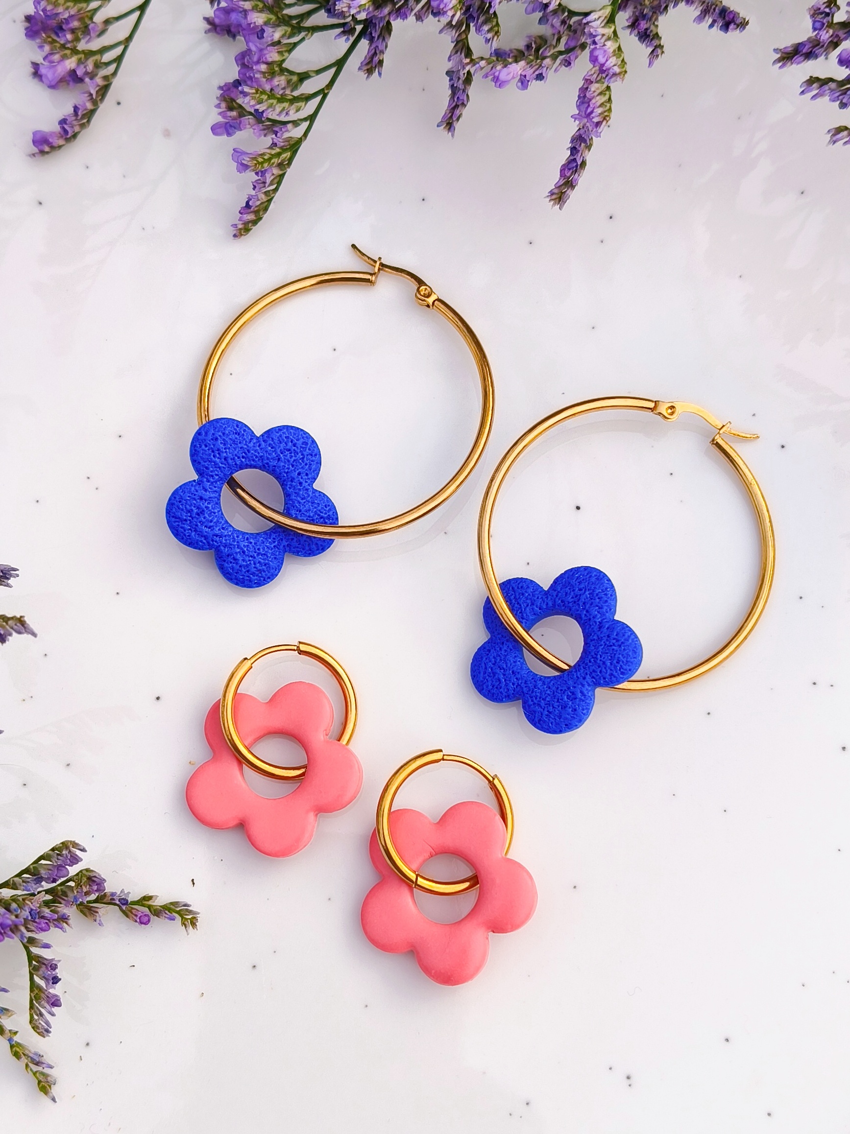 Kolczyki z kwiatuszkami na złotych kółkach to biżuteria, która daje wyjątkowo dużo swobody. Zawieszki można zdejmować i zakładać w dowolnym momencie, dzięki czemu jeden model pozwala stworzyć aż 8 różnych wariantów noszenia – od prostych, minimalistycznych kółek po romantyczne kwiatowe kompozycje.