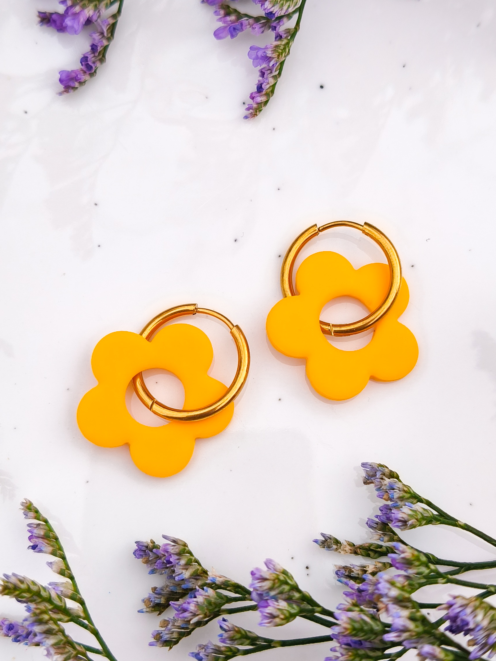 Kolczyki z kwiatuszkami na złotych kółkach to biżuteria, która daje wyjątkowo dużo swobody. Zawieszki można zdejmować i zakładać w dowolnym momencie, dzięki czemu jeden model pozwala stworzyć aż 8 różnych wariantów noszenia – od prostych, minimalistycznych kółek po romantyczne kwiatowe kompozycje.