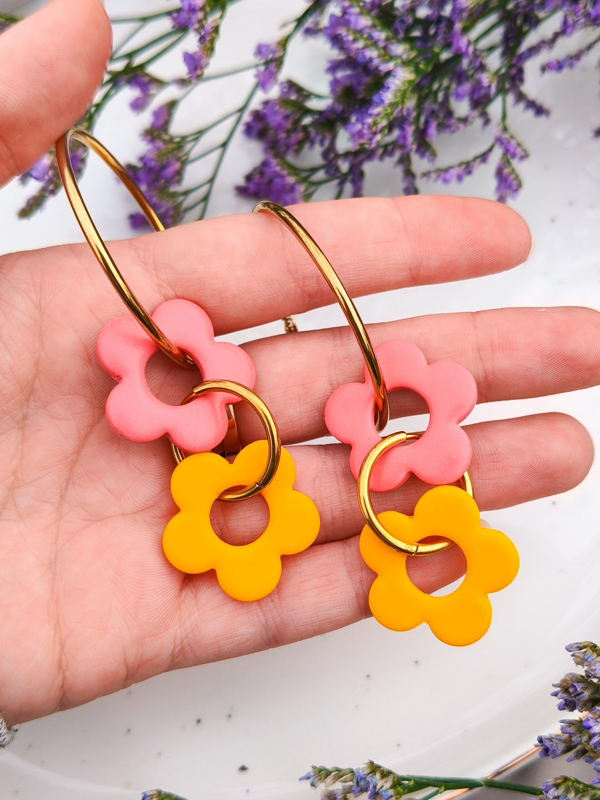 Kolczyki Kwiatuszki 8w1 – Żółto + Różowe