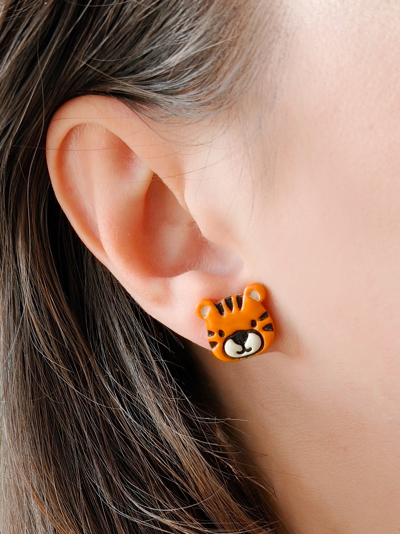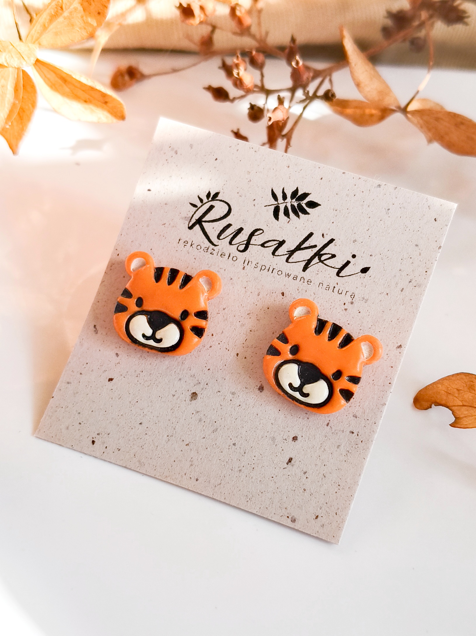 Kolczyki stworzone są z leciutkiej gliny polimerowej. Metalowe elementy są wykonane ze stali chirurgicznej, dostępnej w dwóch kolorach (złotym i srebrnym). Stal chirurgiczna jest tworzywem, które mogą nosić również alergicy. W przypadku chęci zmiany koloru metalowych elementów na kolor srebrny – proszę informację w wiadomości do zakupu.