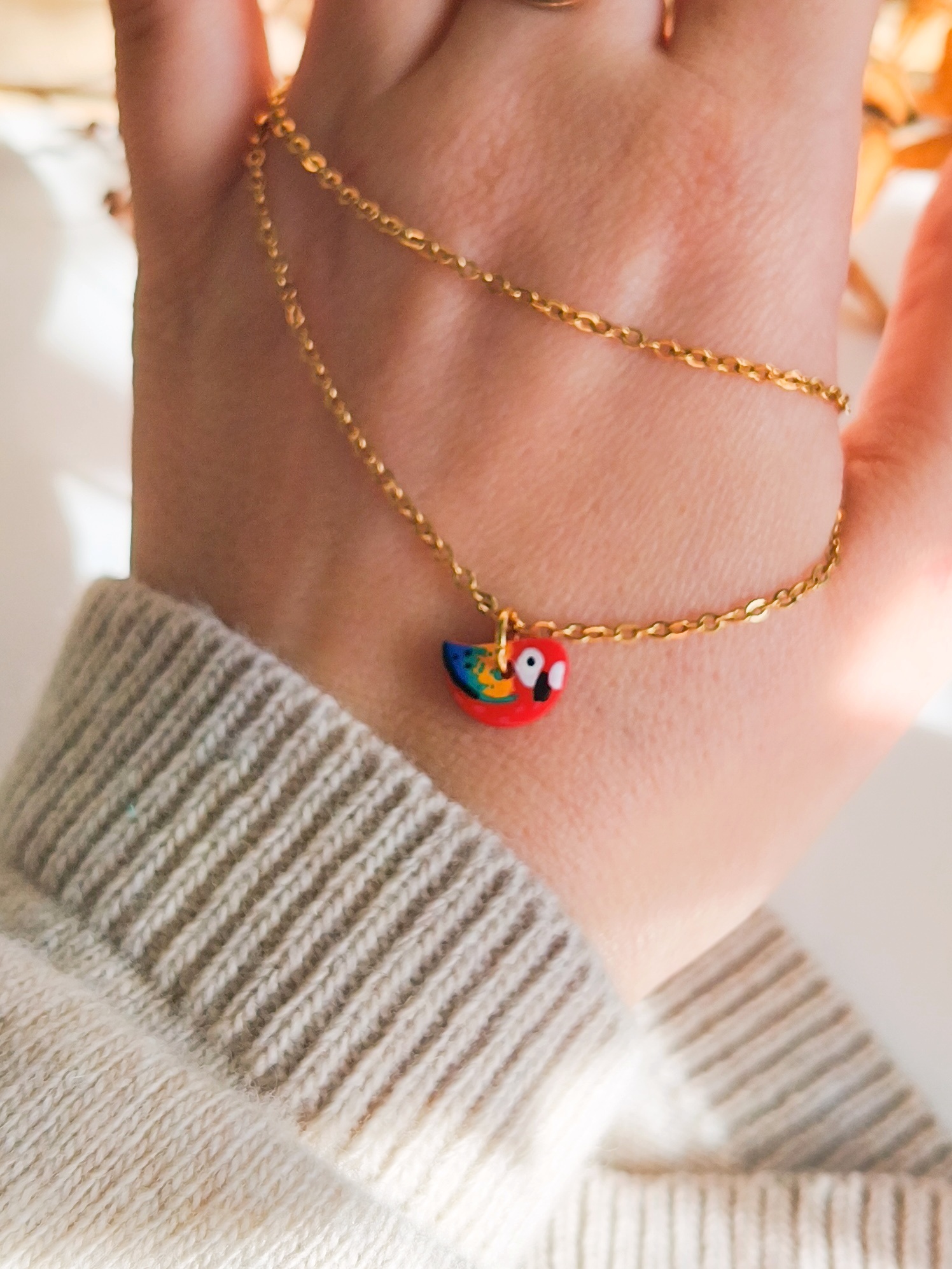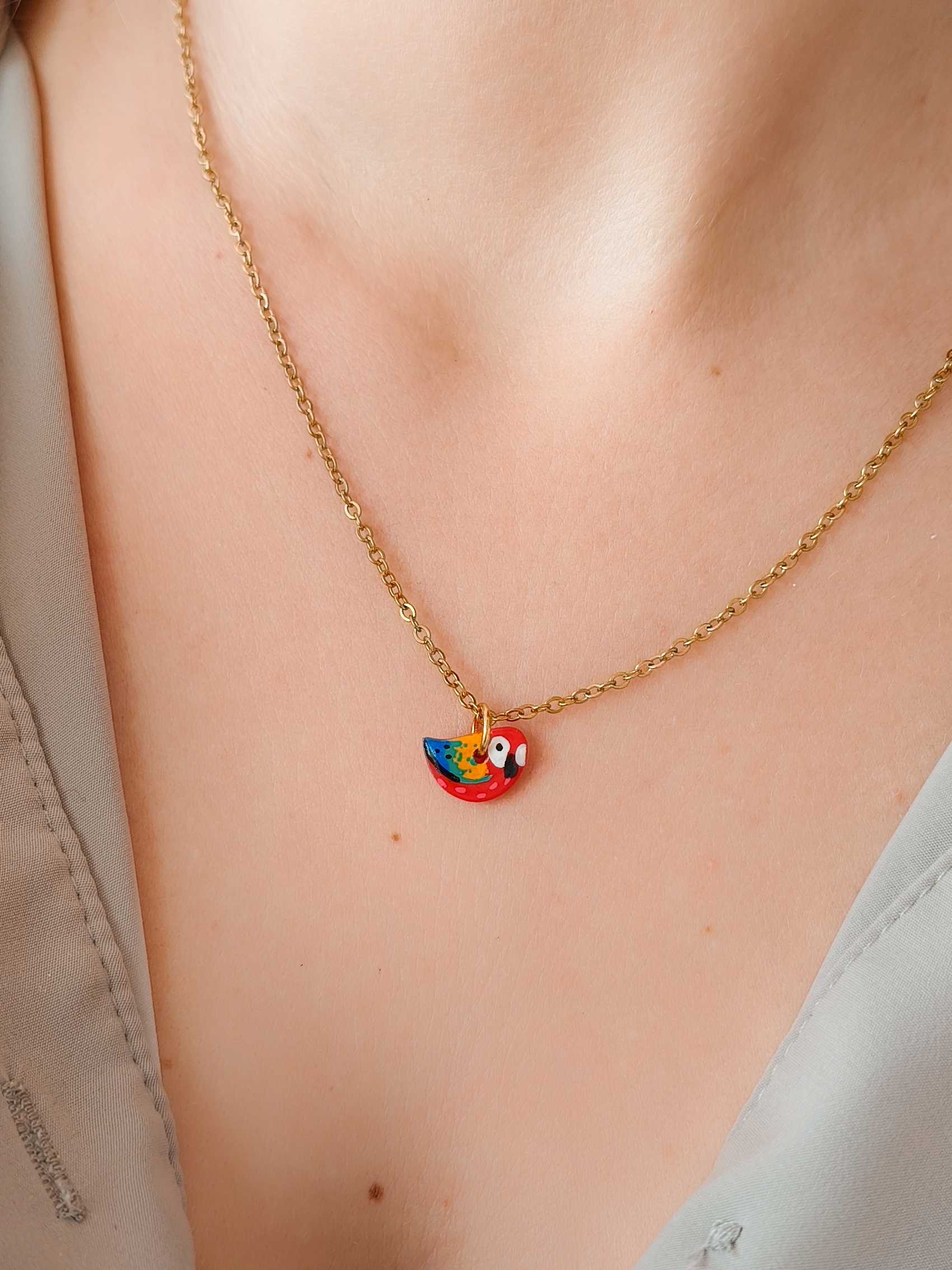 Kolorowa papuga ara to jeden z najbardziej rozpoznawalnych symboli tropikalnej przyrody Ameryki Południowej. Biżuteria z tym egzotycznym ptakiem przyciąga uwagę intensywnymi kolorami i wakacyjnym klimatem. Idealna dla osób, które kochają podróże, tropikalne krajobrazy i zwierzęta egzotyczne. Może być wyjątkowym prezentem dla opiekuna ptaków, pracownika zoo lub każdego miłośnika natury.