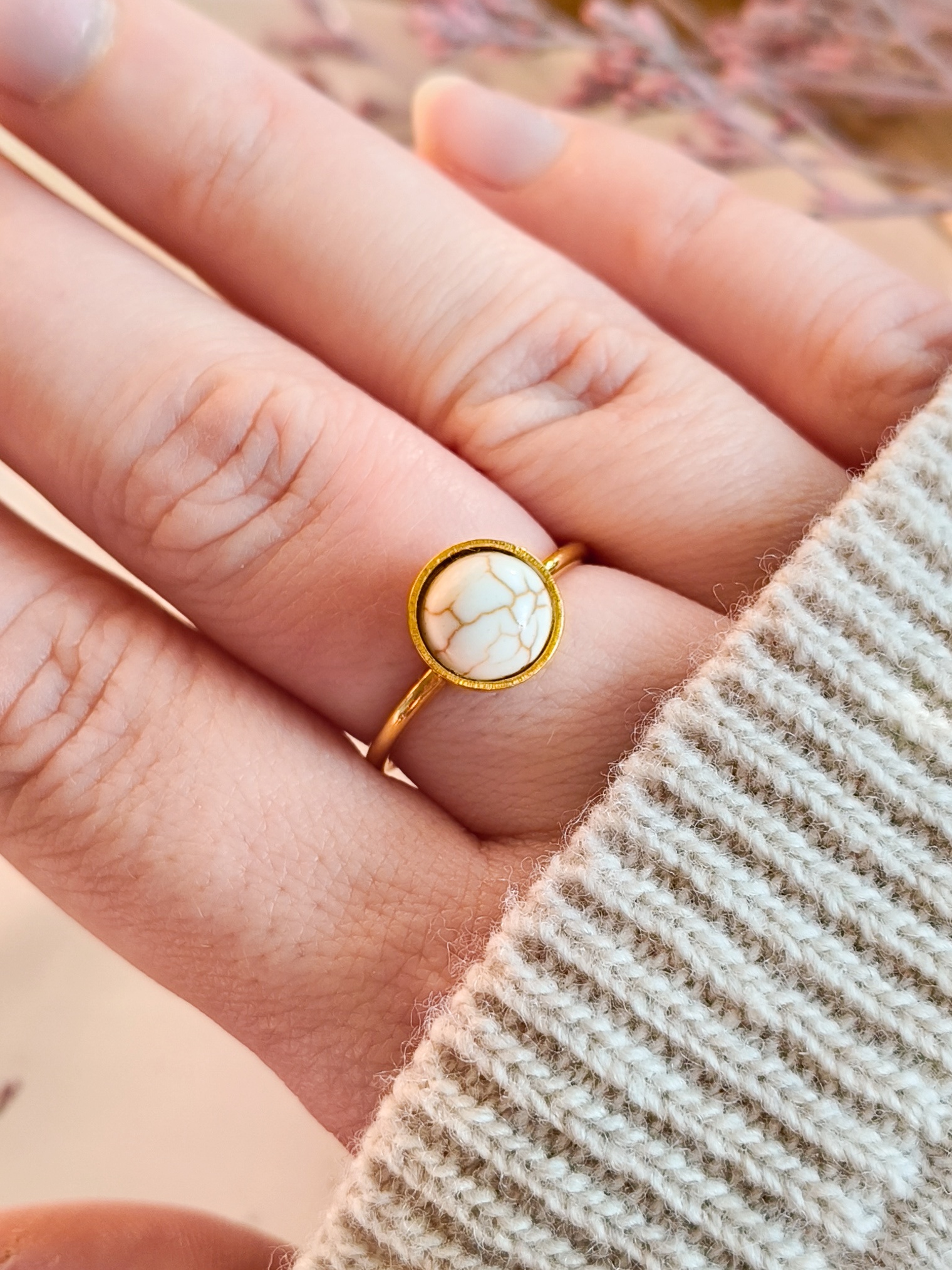 Pierścionek ze stali chirurgicznej z kamieniem naturalnym – Howlit
